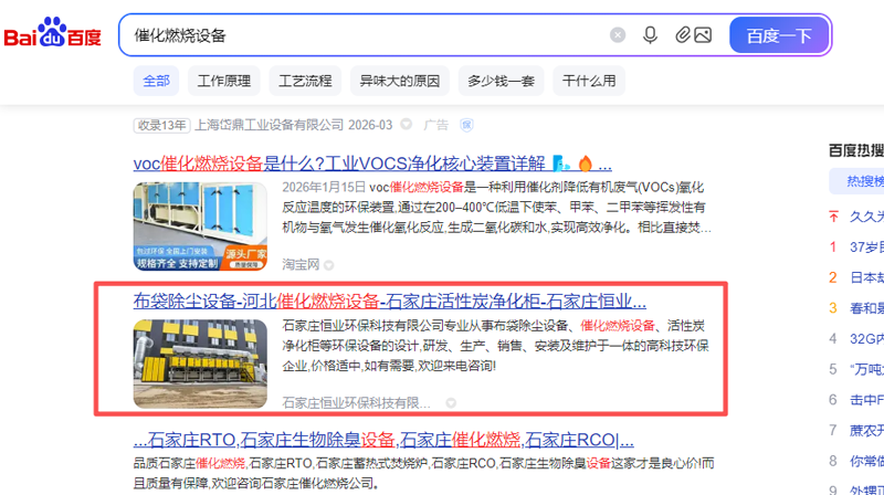 恒业环保与春聚科技合作网站优化,主副关键词稳定排名
