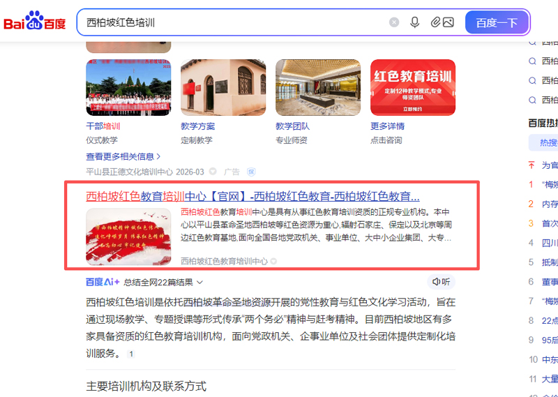 西柏坡红色教育与春聚科技合作网站优化,主副关键词稳定排名